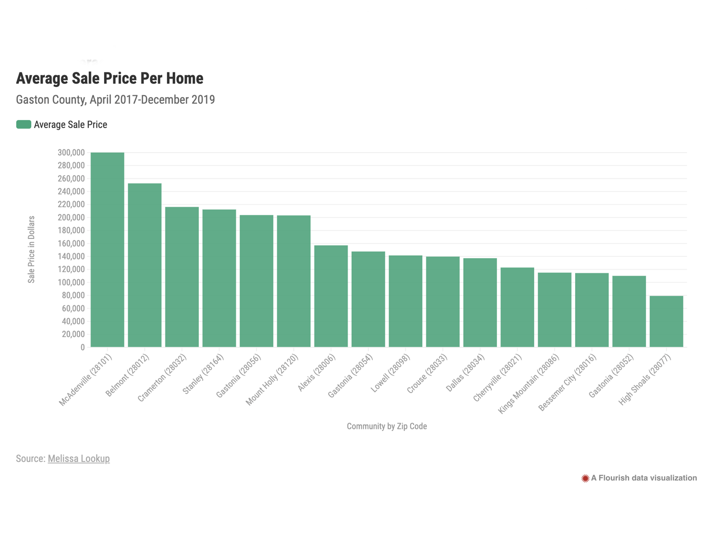 Another element that didn't make the final article was this comparison of real estate prices in Gastonia County, where McAdenville is located.