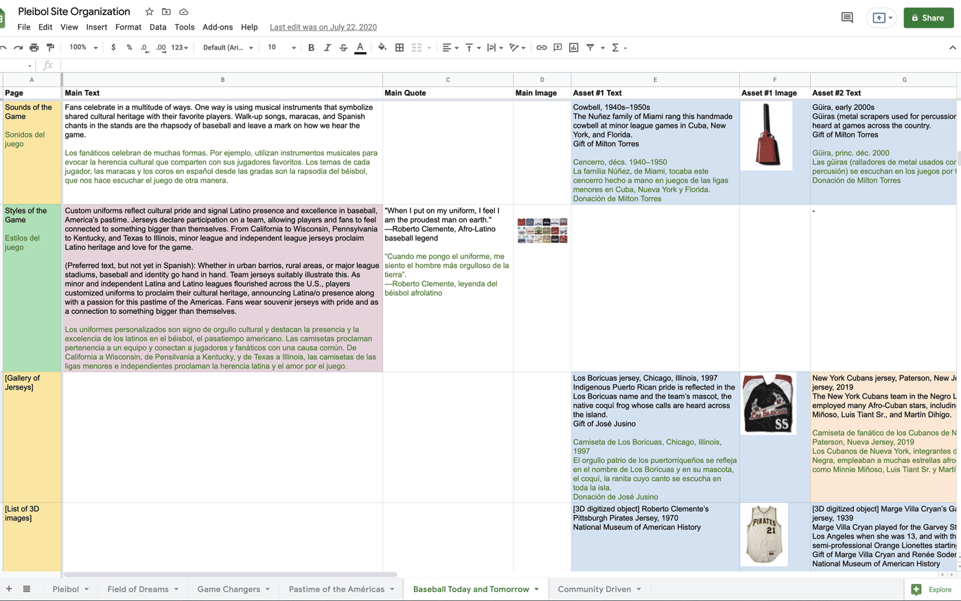 I organized object labels and exhibit descriptions—in both English and Spanish-on a massive spreadsheet.